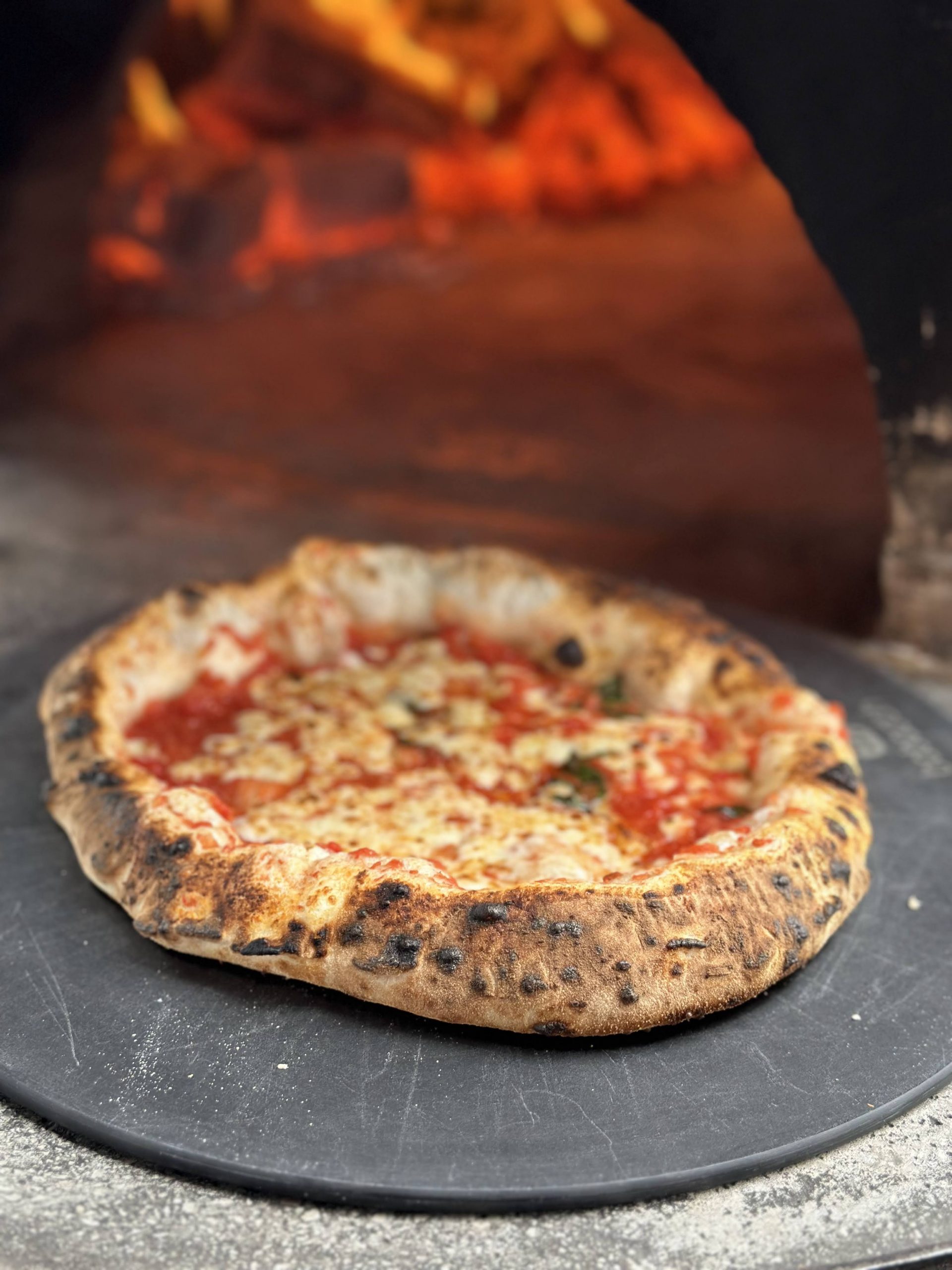 Unser originaler neapolitanischer Holzofen ist ein wahres Meisterwerk der Handwerkskunst. In Neapel von Hand aufgebaut, wiegt er beeindruckende 1500 kg. Mit einer Innentemperatur von über 450 Grad Celsius und befeuert mit echtem regionalen Holz, backt er unsere originalen neapolitanischen Pizzen traditionell in nur 90 Sekunden. Der Ofen bietet Platz für 5 Pizzen gleichzeitig und schafft über 70 Pizzen pro Stunde. Erleben Sie den authentischen Geschmack Neapels bei jeder Pizza, die wir für Sie zubereiten.